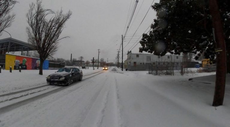 The storm is expected to move offshore late on Monday, but it will be replaced by Arctic air, lowering daytime temperatures significantly, the National Weather Service said.